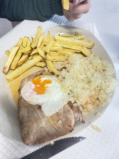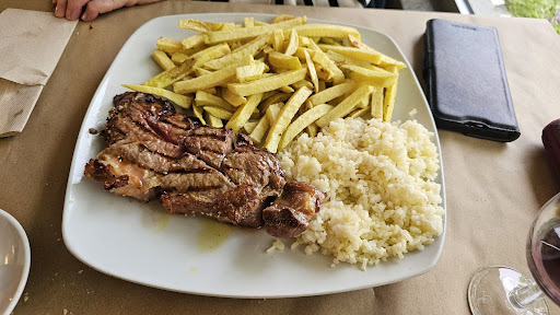 Read moreOn commence para la fin... Assiettes XXL avec des produits de bonne qualité, cuisine presque au top. Menu complet pas cher, je pense que 12 €, tout est compris : pain et olives (amuse gueule), soupe, assiette du jour, boisson, dessert et café. Le restaurant est assez grand, il y a peut-être 40 à 50 tables, plus de 100 places. Nous sommes passés un lundi vers 13h00, restaurant plein, une seule personne à servir, mauvaise organisation. La soupe c'était déjà fini, pas de soupe pour nous. Belles assiettes et bonne nourriture. Dessert presque fini, à la place de 5 ou 6 desserts prévus dans le menu nous avons eut droit au pudim, c'était bon vu que c'était un pudim maison. En résumé, une bonne cuisine et une mauvaise...