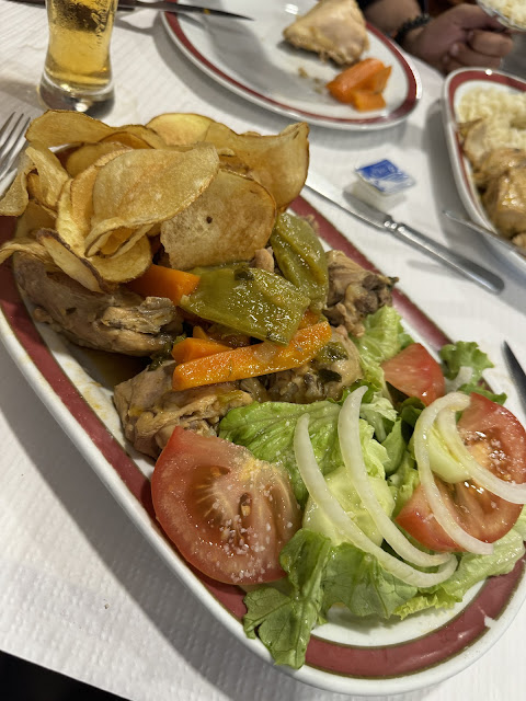 Many years ago, before the highway, everyone stopped at canal caveira to eat. Therefore, this is a must go if you are passing by. You can expect a typical restaurant with a tavern like atmosphere. This is outstanding traditional Portuguese cuisine. Start with bread, butter, olives and cheese. Then I recommend the Portuguese cozido (in the picture), which might not look like what you were expecting but it sure tastes great. It is a collection of cow and pork meats, chorizos, potatoes, carrots and beans. That said, it doesn’t matter what you order, it will be good. And before you leave buy one of the tasty black...