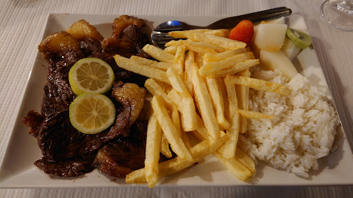 Arrêté complètement au hasard mais guidés par les camions ouvriers sur le parking. Souvent un gage de bon repas). Ça s'est confirmé en passant à table. Une grillade de porc noir et des calamars frits. Un petit peu d'attente mais rien de plus normal, et oui la bonne cuisine qu'on fait soi-même ça prend du temps. Le plat de grillade arrive et on pensait que le serveur n'avait pas compris notre "portugais " approximatif. Un plat pour deux??? Non, la portion pour une personne seulement. Énorme et nous sommes pourtant de gros mangeurs. Les calamars idéalement cuits et très copieux aussi. Les frites maison évidemment. Ravi de cet arrêt au hasard de notre roadtrip. Tous les restaurants devraient être comme celui-ci, de bons produits locaux cuisinés par des passionnés, et sans fioritures. ARRET ICI OBLIGATOIRE POUR LES...