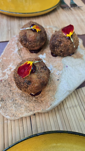 Read moreJantei com um grupo familiar composto por 5 pessoas no sábado passado antes de ir à feira, porque já tinha experimentado antes de 2020 e tinhamos gostado. Para meu espanto uma vez que fui apresentar este restaurante pela primeira vez a um membro do grupo foi uma decepção. Começando pelas entradas de pataniscas de bacalhau cheias de gordura e pouco bacalhau, sendo uma abordagem diferente ao tradicional ainda assim muito pouco satisfatória. De seguida um hambúrguer no prato para uma criança ao qual a carne estava muita mal passada (lapso da nossa parte não avisar o ponto ainda assim obrigação da parte do restaurante perguntar o ponto sendo para mais para uma criança) e as batatas fritas que estavam “cozinhadas” e algumas ainda rijas, ovo estrelado mal cozinhado com partes de clara cruas. Pedi para voltar para trás para passarem melhor a carne e “fritar” as batatas. Para nosso espanto uma vez mais quando chega novamente o prato, o hambúrguer ficou mais bem passado mas a parte de fora ficou extremamente queimada. Como cozinheiro fiquei extremamente irritado com essa situação. Os restantes pratos foram choquinhos à alentejana que pareceu-me estarem mal cozinhados e sabores nada de mais, bochechas de porco cozinhadas com 8 horas (mencionam eles) que na verdade vieram com bastante pouco molho que parecia cheio de farinha maizena para engrossar e por fim um robalo escalado (o único prato que estava razoável). Acabamos por não querermos consumir mais nada e tivemos que levantar da mesa para pagar, quando tinha pedido a conta e esperava já uns 10 min e ninguém vinha à mesa. De salientar que os empregados de mesa no geral são muito mal formados, não têm princípios nenhuns de servir à mesa. Deixou muito a desejar para o restaurante que conheci antes de 2020.