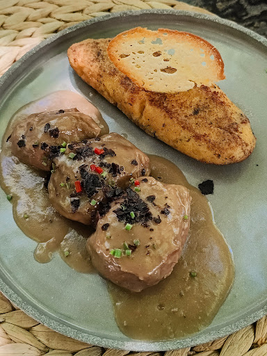 I rarely post bad reviews but this experience is not one I can dress up. We were shown to a table outside on a quiet Tuesday evening. The outside area is a nice, breezy area under trees. We were not given menus, but brought some cheese and olives with dry bread without asking, and some tap water. No drinks were offered. After about 10 minutes the waiter came and gave us a wine menu and tried to sell me lemonade. It was very odd. We ordered a cocktail and a glass of wine. Still no food menus. Drinks came. Still no menus so we asked where the menus were and eventually the cake. This took a while! We ordered - pork cheeks for my husband and cod with rice for me. By this time we’d been there an hour! My cod came with the biggest bowl of bland rice I’ve ever seen. The cod fillet was the driest piece of fish either of us had ever eaten. My husband’s pork cheeks were tender but bland. The waiter did not come back to ask how our food was and at the end of the meal we asked 2 different people 3 times for the bill, which never came so my husband went in and paid. I would not return to this restaurant. Total bill was €70 so while not expensive, it was two hours of confusion...
