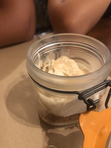 Había menú del día pero nosotros teníamos claro que queríamos probar sus baos así que un plato lo teníamos decidido. Y el otro que elegimos fue el risotto de camarão, con cúrcuma, en un equilibrio perfecto y que se ha convertido en uno de mis platos favoritos. Como postre nos decidimos por el"jardim de inverno", para compartir, que no podía ser más bonito y además estar más rico.