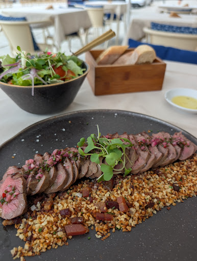 Read moreA hippish eatery hidden on a secluded street. The ambience is cool and relaxed but despite the hint of modern arty farty design, the food served wasn't too fusion. They are still preparing food in a more traditional way albeit with some new ideas. 34 encourages customers to inclusively share rather than ordering individual portions, as the serving each is enuf for 2 pax. Quite liked the the 2 mains: fried prawns with dashi shavings and the buratta cheese in a pesto soup. Both were unique with subtly light flavours. The mains was also different. It's chargrilled fillet steak from Brazil with a side compliment of tempura crumbs with bacon bits. The meat was juicy and flavoured lightly with salt but only one problem for me, personally would have preferred it to be a tad more gearing towards middle raw rather than raw (they didn't asked me for doneness). Also the meat was extremely lean without a single hint of marble fats, making the texture somewhat tough and chewy. Spoiled for wagyu I reckoned.. 😊. Overall, a good...