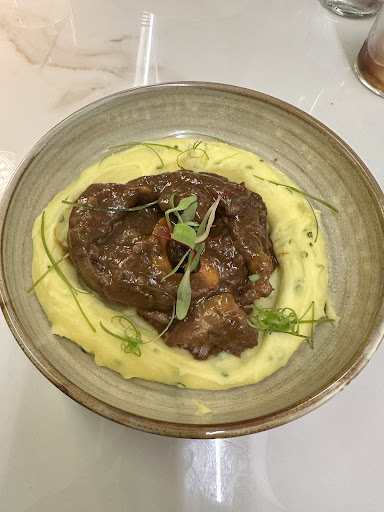A nível gastronómico, o couvert revelou-se interessante, especialmente pelo pão delicioso, semelhante a uma massa de pizza, que já vinha temperado com azeite e especiarias. O patê de mexilhão e as azeitonas Kalamata foram um destaque positivo. As bolinhas de alheira com molho de mostarda e mel estavam impecáveis, com uma crocância perfeita e um equilíbrio de sabores muito bem conseguido.