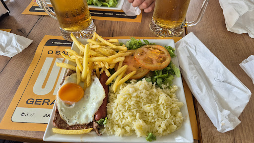 Read moreNão achei muito boa experiência. O chão estava demasiado sujo e a francesinha veio morna. Aliás, a sua confecção estava um bocado esquisita e notava-se claramente que tinha sido vertido o molho em cima de uma francesinha pré-pronta, levada ao microondas e servida(até porque foi servida super rápido). A salsicha o o fiambre parecia que foram "cozinhados" nesse processo de aquecimento, o que não é muito bom não só pelo aspecto do sabor. A meu ver a salsicha devia ter sido bem frita antes de a meterem na francesinha. O bife estava bem passado o suficiente. O molho estava bom. A quantidade era generosa, embora a dose de batatas tenha sabido um bocado a pouco. O preço do fino foi bom. No geral, só recomendava tentarem corrigir o que apontei de menos bom e tentarem confeccionar as francesinhas mais na hora ou terem as duas opções,...