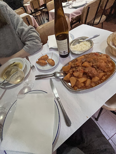 SCAM. Beware if you speak only english. Everything was good, until the bill came. The food was very tasty, staff friendly. When we arrived they automatically came with bread and codfish cakes, did not ask if we want them or not. I ate 1 codfish and was charged 1,6€(you cannot see the price anywhere, based on different review a month ago, they paid 0,8€ for codfish, so what is the price for 1?). Then the waiter recommended us wine, he then told he will give us a small bottle, but then came and right away opened a big bottle(we still told ourselves Ok, because the waiter was nice so we left it). But the biggest scam was that we paid 12,5€ for a dish that was supposed to be 9,5€. We asked about it and they pointed to the only dish they have there for 12,5€, but when looking on Google it was completely different dish than we ordered which was really supposed to be 9,5€. The thing that dissapointed us the most was that they really thought they can overcharge us without any hesitation. If they said sorry and gave us the right price, we would leave much happier and maybe give them a tip, but now we just went away...