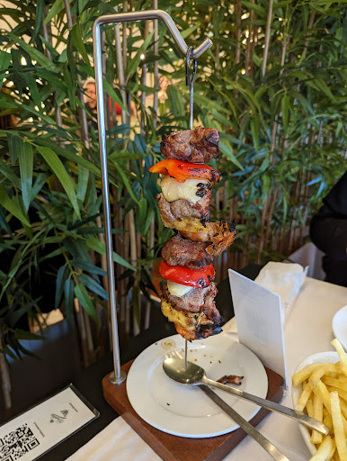 La comida y el servicio buenísimos. Ponen un plato de entrante de 4€ por persona como menú, sin solicitarlo, variado, vistoso y muy sabroso. A pesar de la diferencia lingüística, el personal fue muy atento. No le doy máxima puntuación por no poner la carta en la puerta y no sabía donde entraba, y por otro lado porque pedí un extraordinario plato de carne pero el cuchillo que acompañaba no cortaba, me pusieron un cuchillo sin sierra. El vino muy bueno pero la Coca Cola: me sirvieron un vaso! No pude ver de donde provenía ¿botella o grifo? ... eso lo veo para un McDonald no para un restaurante de...