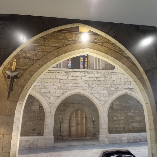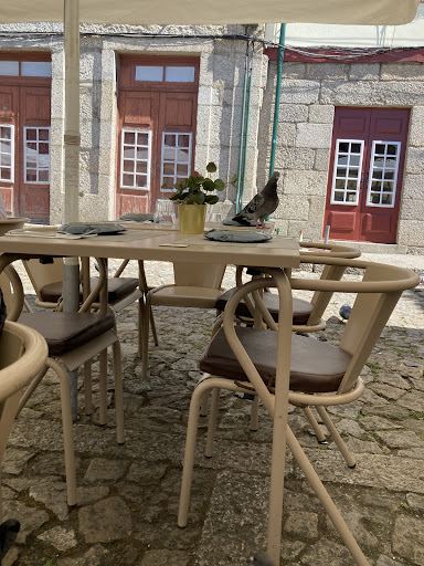 The restaurant, located in Guimaraes Old Town, was built with old Guimaraes town wall, which has beautiful stone and natural color beauty. Inside restaurant, diners can find two contemporary paintings which are on the wall, and these paintings were one line drafted from the beginning to the end for painting image. The restaurant design does give me, probably all other customers, a strong feeling of harmonious integration of historical castle structure with contemporary art and table and seating.