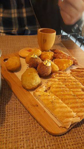 Dou 1 estrela a este espaço, porque não posso dar -1... O espaço é agradável, mas tudo o resto não passou de uma experiência, muito má... Chegamos ao dito espaço, cerca das 20h30m da noite, fomos quase de imediato atendidos, onde, de uma vez só fizemos o pedido... Um pedido simples, uma massa, 3 pregos... Entradas uns ovos rotos e uns pedacinhos de frango panados para entrada... E bebidas... Passado isso, reparei que estavam duas mesas à espera de serem atendidas, uma com cerca de 8 pessoas, que estariam a aguardar a vez de jantar, mas já atendidas e mais um grupo de 4 pessoas na mesma situação. Nós seríamos os próximos a receber o nosso pedido ou isso era o que pensávamos. Pois bem, após 30 min do nosso pedido inicial, chegaram as bebidas, pensamos claro que se seguiriam as entradas... Mas as bebidas já estavam quase no fim e nada de entradas, ao fim de quase 1h30m, eis que chegam os pedaços de frango panados com um molho, que para 4 adultos dava uma amostra de frango para cada um... No entretanto passam mais de 2h e nada das restantes entradas, vemos chegar mais pessoas, a serem servidas antes de nós, mas TD bem, até porque nem sabíamos se tinham encomendado, passadas 2h30m e após insistência por um de nós, eis que vem o primeiro prato... A massa, e a seguir o resto das entradas que supostamente deveriam ter chegado muito antes do prato principal... Entradas que começamos a comer com a mão porque não tínhamos talheres, nem pratos, que só vieram após pedido da nossa parte. Já prestes a desistir e sem apetite nenhum, ao fim de 3h, eis que chegam os ditos pregos... Se estava mal, piorou ainda mais.... Bife do vazio, completamente torrado, seco, sem sabor, o pão igualmente seco, sem molho com uma fatia de queijo e fiambre... Outro cheio de gordo, impossível de digerir e outro completamente torrado de um dos lados e do outro cru... Digamos que esperava um pouco, ou melhor, bastante mais, por um prego de 7.50€. Como estava impossível comer, chamei o funcionário e expus a situação, da qual nem um pedido de desculpa tive direito... Fomos pagar a nossa despesa e como é óbvio, o que esperávamos, era que aqueles 3 pregos, não fossem cobrados, pois no fundo eles não estavam em condições... Mas isso não aconteceu... Total da despesa 46€... Um pedido de desculpas pelo prego de carne torrada, com a desculpa que ao fim de semana a comida não é boa, para passar durante a semana que é melhor e que a cozinha não tem condições para fazer os pedidos todos dos clientes... Resultado disto TD, 3h de espera para comer e vir embora com estômago vazio e carteira mais leve... Espero que o proprietário repense seriamente, se faz sentido continuar a servir comida... Porque pela má experiência que tive, não consigo recomendar aquele espaço a ninguém... E como é óbvio, será um espaço que não...