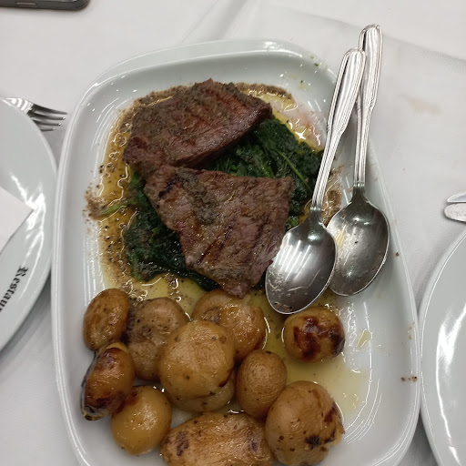 We had the Bifinhos de Vitela con cogumelos. Ohhh so delicious. You have to try this restaurant. The dessert was queijo com marmelada!!!! For the rest of the menu we have to come back. That's all that's left. Our waitress' name Ana Paula...