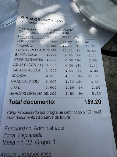 We had dinner on 14/08/2025 and paid 186 Euro for the following: Fish soup with rice. It was good. Rating 7 out of 10. Tuna sashimi. Tuna was local and not best graded but fresh. Rating 6 out of 10. Cabbage salad pickled. Rating 7 out of 10. Stone crab priced 34 Euro per kilo. Crab was dressed but you had to extract white meat from claws with utensils. Rating 8 of out 10. Blackspotted sea bream locally caught at 25 Euro per portion was perfectly BBQued on the grill. Rating 8 out of 10. Prawns on the grill were nicely seasoned and chargrilled. Rating 8 out of 10. Irio fish (amberjack) was perfectly BBQued, seasoned and flavoured. No complaints with rating 9 out of 10. Simple veggies salad was fresh and with fresh cabbage, tomatoes, cucumbers, corn, iceberg lettuce and onions. Rating...