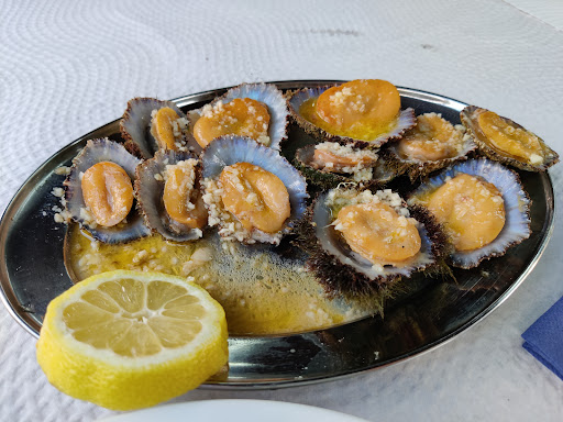 The somewhat unassuming exterior is misleading. Once you step inside the atmosphere is rustic, very orderly, with a deep blue accent color indoors and an outdoor balcony with a fabulous view of a beautiful bay where you can enjoy stunning sunsets. The food was delicious starting with the local cheese appetizer, the barbecue chicken (with French fries, salad and cheese bread) the cooked to perfection fresh tuna (with boiled potatoes and salad) and a creamy, sweet pineapple desert. Be aware of the fresh fish dishes posted daily on a black board rather than on the menu. Although we did not order wine, the wine list was extensive and the wine was served chilled. Adjacent, off the street parking was very convenient. This is a restaurant not to miss if you...