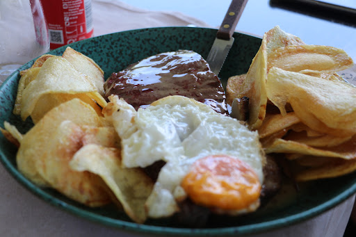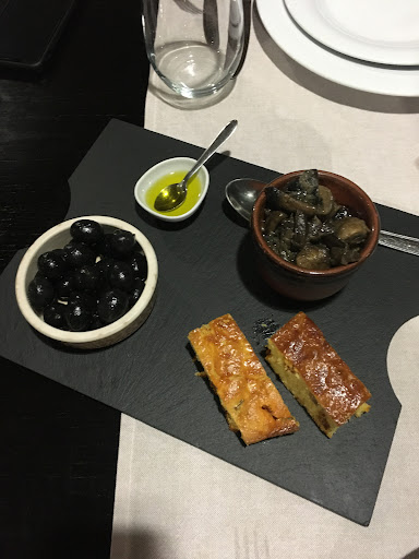 Read moreLes repas ont tendance à devenir plus copieux et plus lourds à l’intérieur des terres, alors lorsque vous êtes à la campagne, ne soyez pas surpris de voir des plats traditionnels tels que feijoada (ragoût de haricots et de viande ), et Cozido à Portuguesa, un ragoût bouilli traditionnel avec un arc-en-ciel de viandes, les abats et les légumes frais sont généralement considérés comme le plat national du pays, remplaçant les plats de poisson et de poulet grillés plus légers que l’on trouve plus près de la côte. Le rôti au four, le riz de canard, le lièvre et les recettes de sanglier sont d’autres plats traditionnels dans les régions rurales de l’Algarve ou de la région Centre Le sanglier (javali) est un autre exemple de l’excellente cuisine portugaise à l’intérieur de l’Algarve et de la région centre, appelée aussi familièrement la région des montagnes, et c'est quelque chose que vous verrez sur les menus des restaurants de ces régions comme à Monsanto au restaurant Adega Tipica O Cruzeiro Lda Ici le sanglier est servi aux châtaignes à l'étouffée, un régal, plat très copieux; A noter également les portions généreuses des Bistoques à la portugaise, et du riz à la lotte ( Arroz de Tamboril) En tapas, il nous est proposé à 2.5 e par personne une assiette de champignons (excellents), olives, huile d'olive...