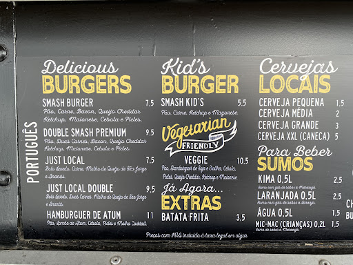 Very good vintage fast food style burger (somewhat similar to In-And-Out). Option for bolo levedo instead of bun. Standard burger comes with bacon, American cheese, white onion, pickles, ketchup, and lots of mayo for 7€. Burgers are served in a wire basket and can be eaten in the picnic area or in your car (not sure if they offer to-go packaging).