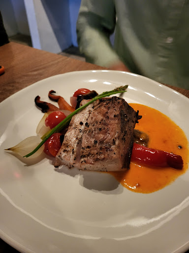 The environment was relaxing, with excellent low-key music (we were not there during a live set). The dining room is gorgeous - think historic stone masonry with vaulted ceilings. All of our dishes were excellent: mushroom risotto was perfectly cooked duck confit was juicy, not dry, served with a sweet reduction and grilled potatoes & vegetables, one of the best preparations I’ve had tuna steak was thick cut and fresh, grilled simply and perfectly medium-rare the seared fatty tuna appetizer with Japanese flavors was off the charts