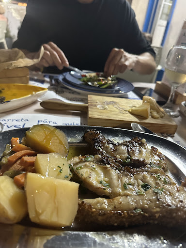 Pros: The staffs are quite nice, helpful, and attentive. She helped us to find a table while we were waiting. The restaurant sells fresh grilled fish and any other Portuguese food. We ordered Lapas as our entrance and it was so tasty (€15) and the quantity was enough for 2. The garlic bread was good (€3,50). The sauce of my chicken wings was tasty too. The grilled fish of my partner was tasty and good. It was half dose and the quantity was enough for him. Free WiFi accessible inside the restaurant. They allow dine-in and take-away but not delivery order. They allow payment in cash or card. Indoor and outdoor seating available. There is a table service. The restroom is free. Entrance accessible for wheelchair. Parking accessible for wheelchair. It is free to park nearby. Not mandatory to wear a mask. Digital menu is accessible with...