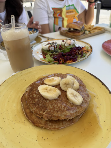 I couldn’t decide what to get, so I went with both the oat pancakes (you can pick your own toppings) and the avocado toast. The pancakes were maybe a little dry for my taste — I usually prefer when the oats are mixed a bit more smoothly — but that’s just personal preference. Some people might actually love that texture, and overall they’re still worth trying.