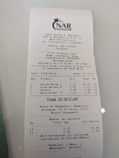 Read moreTerrible experience, if your English stay well clear !! We went in for a late night kebab after a few drinks, my wife daughter, young son and I, my wife ask for some chilli sauce with her kebab as all was given was a mayonnaise, the chilli sauce they gave her burnt her so bad that we was shocked, when we asked if that was even legal we was surrounded by Portuguese men, it was shocking and very scary for my kids, so bad we will never come back to Portugal again, unbelievable and sad, they should be ashamed...