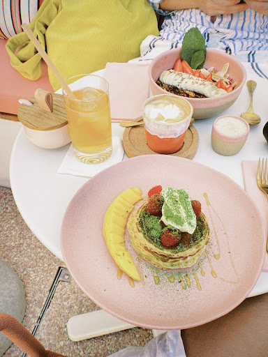 The round tables are cute but small for 3 people. It’s ok for 2.