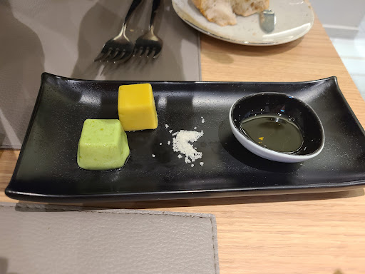 Read moreThis is was by far the best food we had on our trip to Portugal. This place is so under rated, I am surprised they are not Michelin starred yet. The resturant is located away from the resorts in a more residential neighborhood, the interior decor is simple, modern and functional. Food is the star of the show here not the fancy interior design as some other restaurant do. We were greeted and were served by professional wait staff and the owner himself. You could tell the owner had hired a team of servers with deep knowledge of food and many years of food industry experience. They were all very fluent in English. We had a wonderful introduction to a local ingredient called carob which was part of our bread stick and then dessert. We were treated by the chefs complimentary carob bread stick and hummus which was very tasty. The couvert is highly recommended we enjoyed the local olive oil and salt. On the next course we went with tapas starter which was an amazing culinary journey, every bite was enjoyed and savoured. We were also visited by chef Ivo and took his recommendation on the order to eat each dish, presentation and taste was world class, a must order. We then shared a t-bone steak which was cooked perfectly and accompanied with 2 amazing sauces. We finished our meal sharing the orange carob cake which was great. They also have a nice wine list, we enjoyed their recommended local red wine with our meal. Overall I highly recommend you try this place before the...