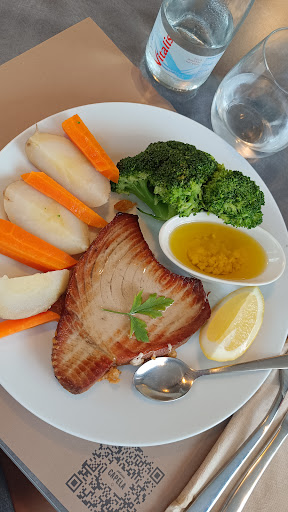 Read moreReally delicious dinner. The food is so high in quality and meticulously cooked. I had hake and it wasn’t fishy at all. The addition of the garlic/olive oil gravy boat is a lovely touch to the meal. The vegetables were cooked to perfection. The sea bass looked amazing and so did the spaghetti bolognaise. The portions were large. The beer was delicious and perfect on a hot day. The dessert of apple crumble with ice cream was delicious. Finished off the meal with a glass of port!...