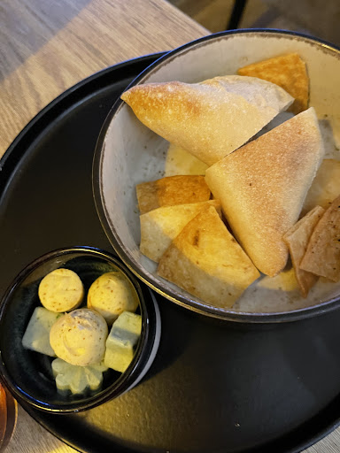 We ordered "one" couvert for the start, the duck in red curry and the wagyue beef burger as main dishes. The couvert was tasty but not enough bread for the dips.