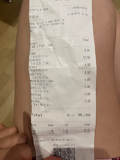 Everything is bad experience here!! First, waitress is not smart. I paid the bill and she gave to the receipt to my partner. What is this?? Second, we ordered homemade bread but they charged us per person so it was 2. Bread was chopped so smaller and some of them are like someone’s left over. Not even cut by knife. My partner said he felt the same way. Olive and butter was good. Cheese is so small and expensive. Main dish for spare rib is no seasoning at all!! Just grilled. I have to put salt myself. Meat and veggies are so hard… my partner’s chicken was good. Small beer €4.0, glass of white wine €3.50 very expensive. Taste was not good at all. Restaurant close at 21:30 but they turn off one of AC 20:30, so many flies always around the place, always near our drink and bread….Spend 35€ for feel so bad!! I do not recommend this place for anyone. I’m really disappointed we choose this restaurant. Education to the waiters are very important. Give to the receipt who pay the bill!!!! Not to other people!!! Do something about flies!! Season the food properly!!! Do not charge the bread per person!!! Never heard it!! If this restaurant keep doing this they will lose a lot of customers. We are from Lisbon but we have a lot of friends and families in Lagoa so this was very disappointed experience. Not recommended at...