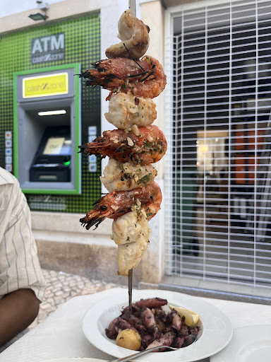 The servers where busy but attentive. We ordered a bottle of water, vinho de casa Branco and bread. We shared a starter of prawns fried in garlic (gamba fita com alho) which was light and not too oily like the Spanish Gambas Pil Pil.