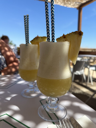 Read moreBeen here few times over the years, today was not a good day. Charging 9€ for a cocktail I can understand in the present day and time. We had a Piña Colada where there was not a slight hint of coconut traceable…weird? So after prompting the staff they mentioned ‘Oh maybe we forgot this’ (lemon juice)…’Oh no it must be this’ (coconut cream) ah Yes! No compensation offered, hey what about a new one on the house? Something else maybe? Nothing of that, in fact total absence of any communication until we left. And how about offering some nibbles (peanuts/beans/crisps) with these cocktails? Is that too much to ask? And how about cleaning the outside tables with a wet cloth before putting new drinks on them instead of having the sand and sticky stuff from the day before still on there? Conclusion, location fantastic but quality of staff under par (not necessarily their fault, they should be trained and instructed better).
