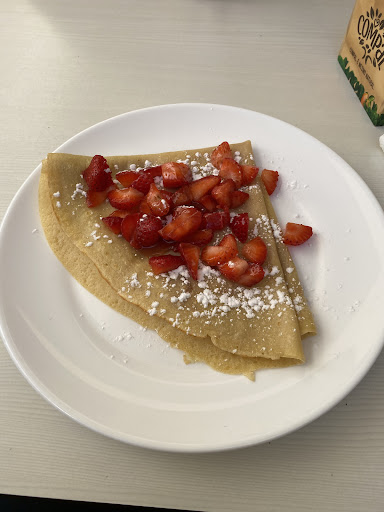 Read moreThey must have been having a bad day. We ordered an English breakfast, a ham and cheese sandwich, a crepe with Nutella and fruit, and a pastel de nata. The juices are fresh, but that's the only good thing I can say. The pastel de nata and crepe came out quickly, but the crepe had neither Nutella nor fruit. After a second try it came back with imitation chocolate syrup and fruit. Presentation was decent, but taste...meh. At least 20 minutes had passed before we asked for our check because other tables were leaving without getting their food so we believed we had been forgotten too. Coincidentally, as we were going to pay the rest of our meal came out...incomplete. I didn't have my OJ or coffee when the meal hit the table, there was no toast, the beans we not even warm, the bangers were nothing more than hotdogs from a jar, and the eggs were borderline burnt on the bottom while over easy on top. The ham and cheese sandwich was nothing special, but at least they sprinkled some dried herbs on top for decoration. Food and service not worth taking a "little...