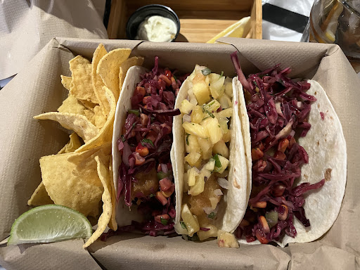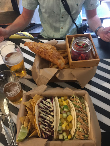 We stopped in for lunch after reading the good reviews. We ordered the onion ring tower and fish tacos. I’m highly allergic to bell peppers and always mention this, even if what I order isn’t said to contain them, since if my food even touches bell peppers I’ll be sick for the rest of the day, as well as the next day. I mentioned this to our waiter, along with mentioning that I can’t eat jalapeños, and he said there shouldn’t be any peppers in the tacos. Midway through eating, I discover green bits of what I assume are jalapeños in two out of three tacos, so I remove them (I’m not as allergic to jalapeños–bell peppers are the absolute worst for me). When the waiter comes to give us the bill, I mention there were jalapeños in my food, to which he says there weren’t, and he then pulls up a picture on his phone to show me what the green bits were. What do you know–he shows me a photo of a bell pepper. I tell him I told him I’m allergic (and he said there weren’t peppers in the tacos!). He apologizes. I say they should be more careful regarding his allergies. His response? “Sorry, but it’s not my fault.”. So yeah—in conclusion, the food was good, but I don’t recommend this place given the mishandling of food allergies and the couldn’t-care-less response.