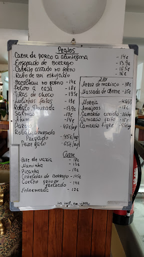 Anotem-se outros detalhes: TV com som alto, num canal desportivo, passando um jogo qualquer estrangeiro, nem perguntaram se estávamos interessados. Não havia menu em papel, os preços dos pratos estavam afixados na parede, melhor , nas costas dum móvel que servia de separador entre a sala e a cozinha.