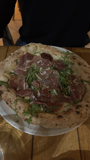 We were seated outside right by the entrance to the restaurant, which was fine but as there is often a queue for this restaurant it meant we had an audience for much of the meal. Can’t be helped, I suppose - somebody has to sit there. Service was quite prompt and was polite and professional but nothing to write home about. The pizza was absolutely excellent (we got the diavola and the antica napoli), some of the best I’ve had and I expect we’ll probably return before we go home. However, the starters weren’t great. I had the tomato bruschetta which wasn’t bad, nice bread and nice tomatoes with a drizzle of oil and some fresh basil, but it could have done with some salt and maybe pepper (there were none on the table), and the tomatoes were cherry tomatoes cut into quarters, which meant they were prone to falling off, making it difficult to eat (especially in front of the aforementioned audience). The menu stated that the mozzarella dippers are served with marinara sauce, but the bought-in mozzarella sticks were served with what looked and tasted startlingly like ketchup.