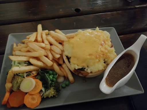 Our food took 40 minutes to arrive. The beef was so dry, my husband couldn't eat it. I switched him meals, but my fish pie was pretty bland. I asked the waitress for more sauce for the beef and things got worse. The cook had a complete come-apart. Throwing pans, yelling profanity and obviously screaming at the waitress. My husband, worried about her, asked if everything was okay and she said the cook was mad because prep hadn't been done the night before. I could hear him yelling about the lazy staff and that they 'only had one table the whole bloody night...'