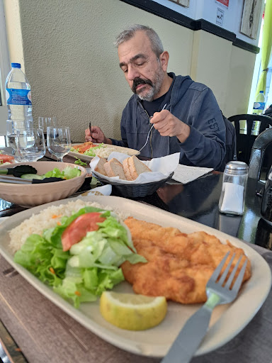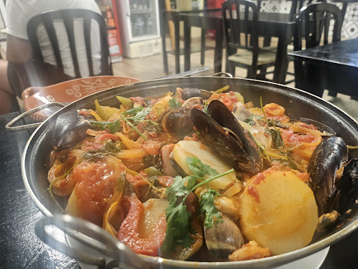 Read moreUn bar restaurante de barrio.. pero mejor que muchos de esos para turistas.. el personal súper amable..devén de ser los dueños.. la comida buenisima.. tienen un plato del día.. como le llaman ellos.. que en realidad.. es un enorme plato.. con primero y segundo.. lo cambian todos los días.. pero parece exquisito.. vimos salir un par de estos platos enormes.. que costaban menos de 10€ y alucinados con el tamaño.. y la buena pinta que tenía todo.. nosotros.. pedimos una cataplana portuguesa.. Cataplanaza.. xxl no pudimos comernosla entera.. madremia que buena.. y de postre muss de lima para Ana.. y de chocolate para mi.. comimos genial.. repetirmos seguro.. muy.. muy.. muy.. recomendable.. la camarera es una gran profesional.. que te recomienda que no pidas de más.. cuando ve que te pasas.. además hace lo imposible.. porque la entiendas y entenderte.. aunque hables Andaluz cerrado como yo.. jaja.. nos hemos sentido...