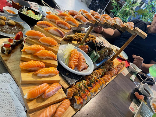Read morePrimeiro tenho que alertar para os vasos que puseram no estacionamento em frente ao restaurante. Servem para estragar parachoques, pois podem ficar (e ficam) em zonas que mesmo com sensores, os sensores não os detectam. Também há um estacionamento nas traseiras mas não sabíamos e não nos apercebemos. Em relação ao restaurante em si, este é gigante e apesar de ter muitas mesas, estas não ficam demasiado juntas e conseguimos ter privacidade. O restaurante está bem estruturado. A decoração é original, bonita e cuidada. Têm muitos empregados e por isso, mesmo com o restaurante cheio, conseguimos chama-los quando é necessário. A comida veio bastante rápido, mas fomos cedo. Eram 20h. O sushi é muito bom, mesmo o mais cru, menos apreciado pela maioria dos portugueses, é muito bom. Não têm só sushi.. têm também comida chinesa, carne e muitas outras coisas. A variedade é mesmo muito grande. A carta para escolhermos o que queremos, é por QR Code e apontamos em papeis os números e as respectivas quantidades. Pagámos cerca de 19€ por pessoa, mais as bebidas, sobremesas e cafés. Ficou em quase 30€ por pessoa. Pode-se pedir o que se quiser, mas atenção para não pedir demais a ponto de sobrar, pois o que sobrar levam para casa e pagam ao peso. As sobremesas são gigantes (esqueci-me de tirar foto). Escusado será dizer que é necessário marcar mesa, pois a afluência ao restaurante é...