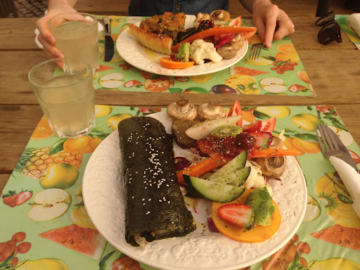 The food was nothing but superb. Well served and perfect composition. Prices are unexpensive for the quality of the experience! For the drink section, orange juice, fresh and sweet 10/10 and mango smoothie: amazing. In the price side, you can easily have lunch for 15 euros (main course and 1 drink). It's absolutely worth it. If you want something of quality and out of the ordinary this is the place. Atmosphere is great with a beautiful patio. Service was amazing, kind and generous people, going out of the curb for us. Exceptional, welcoming and friendly staff and owners.