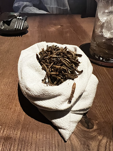 The low point came when we were served a dish made with worms. Our appetite vanished completely. We didn’t eat the worms, but the waiter left them on the table and walked away.