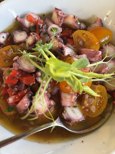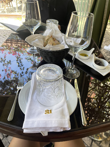 Read moreWe were a party of 3. Nice enough setting by a fountain and quiet ambience. The decor was tasteful. After very hot weather it was blissfully cooler today so we sat under a tent outside. The inside is dark so better,imo, in the evening so would suit a more intimate dining experience. The area is a mix of abandoned houses and trendy restaurants: one of my favorite in Lisbon as it’s close to Janelas Verdes and Alcântara and central to so many eateries and bars. The service Rafaela provided was attentive. The lunch menu ( executivo) was inflated (7 eu) by olive paste / butter / olive oil and bread so they add these items after and by the time we finished it was around 27 euros (split 3-ways) after 3 glasses of house wine). The portions are not large. Arroz de pato on dark (Nero) rice was tasty enough though not a large portion. One of us had the mushroom risotto that was a little ‘soupy’. The starter was a crispy taco with some veggies: a little hard to eat without the ‘crunch’ going all over the table. Dessert was a very rich chocolate medallion with caramel. Overall ok though nothing to write home about, and there are so many other haunts...