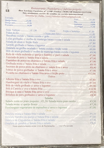 A horrible place, it has a bad vibe. Not very clean. The waitress and cashier have a bad face, she mistreats the customers and is quite rude, everything necessary to scare the customers away. The food is average. The other two waiters tried hard to erase the unpleasant attitude of the waitress. There are no notices that inform you that they do not accept cards other than Portuguese. I do not recommend the place. My first day in Lisbon and it is already my third bad experience. I do not know what is wrong with the women who provide service here that they are so rude and unpleasant. Minus...