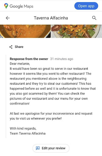 Our party of 4 was looking for a different restaurant a few doors down (Taverna Alfacinha) for a super late lunch at around 3:30 on a Friday. When we first arrived at Taverna, a man told us that the location only did seafood rice, and if we wanted to order other menu items, we would need to go down a few doors to their second dining area. We weren't sure if we were being scammed to go to a different restaurant or not but when he showed us the menu, it was identical, so we went with him. I did notice that the other restaurant had an 'Adega Mó' sign inside and I was skeptical. But we were hungry, it was late, and since the menu was the same, I just believed the guy that it was the same restaurant. Turns out it wasn't, and it wasn't confirmed until after the fact, when I posted a review under the original restaurant and they said it has happened before where Adega Mó steals their customers. Judging by their food, I can see why they have to resort to dishonest tactics to get customers. We had: