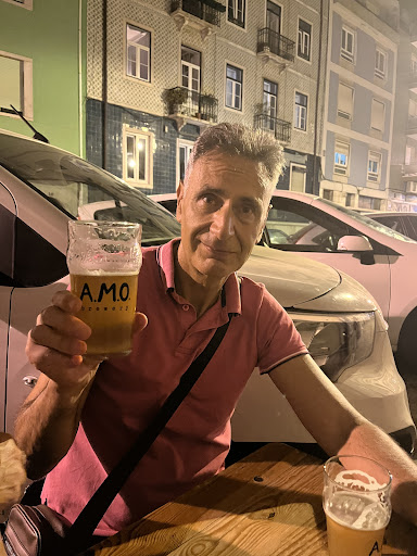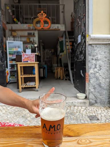 Read moreI really enjoy beer, especially from small and local places with some flavor. I was browsing breweries in Lisbon preparing for a 28-hour layover. So glad I went to AMO while walking the city - all of the other positive reviews are accurate. It's a tiny place in a residential neighborhood (not in the tourist district) with a dozen or so distinct brews from across the spectrum (IPAs to stouts, and in between). I enjoyed several along with a freshly baked pretzel, and took the owner (not pictured) up on her offer for a tour of the brewery itself which was smaller than an American-sized living room. These are the best places to visit, and I can't wait to...