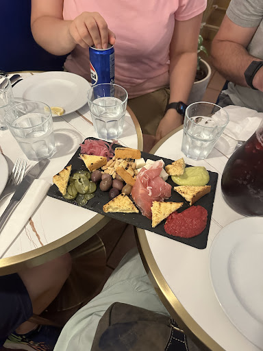 Found on the internet and reserved at 19:30. The reception was very warm and friendly. As a starter the "antipasti" dish for €14,-. Then the octopus and the Portuguese paella. The antipasti dish was fine for the money. All ready-made food. A restaurant hardly has to do anything for this. And then came the first surprise of the evening. The extremely friendly young woman serving asked if she could take the dish, which was almost empty, with her because the main course was already ready. Did they want to use the table after us for a second round and did we have to hurry? First time and we visited 500+ restaurants. Not a good thing to do. The main course arrived and yes the black rice with the octopus was at most lukewarm. The dish had probably been ready for a while. Sent back and it was resolved perfectly. The paella lacks the characteristic crust for a good paella, the soccarat. But it was very tasty. I wonder if they use the right rice for both dishes. Unfortunately that was no longer possible to judge because the black rice under the octopus was completely overcooked, mushy even without any structure. The octopus was delicious and a good portion. We indicated that we did not want a whole bottle of wine when we ordered. The service had 2 red wines. 1 full, a Douro and 1 less full but organic. And now came surprise 2 when we got the bill it turned out that my glass of wine cost €14,-. That is quite a bit above the price of the house wine of 6.50. That is disproportionate and also very important no transparency about the price in advance which is essential for a customer. I understand that people want to make money but now you have sold an expensive glass of wine but lost an otherwise satisfied customer. I saw 3 weeks ago bit the same thing happened to another customer and the owner responded with that they try to improve their service. The service is super friendly, but they have failed to improve this. The food is ok. When I saw the desserts I thought am I in a Starbucks? Brownie, Carrot cake, Apple crumble, so we skipped those. 4 stars means good. That's to much, 3 stars is so so....It 's in between. 3,6/7 I would say, without...
