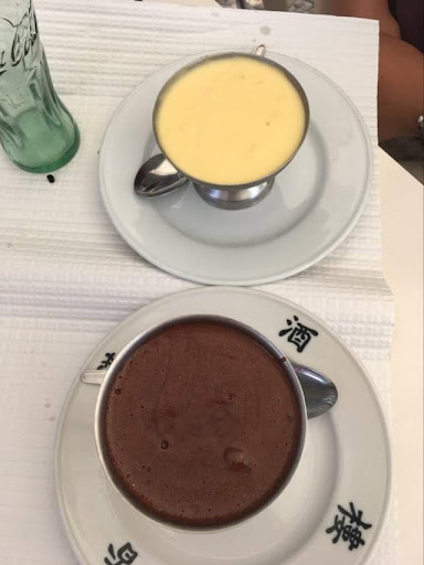 Went to Apache looking for a warm meal after a cold spring rain. Amidst the restaurant row of Asian, fusion, vegan, Georgian, halal, and everything eclectic in between, catering to guesthouses and hotels in the area, lies a hidden gem of good honest Portuguese food. From the front, it looked like a bakery without the pastries, the locals looked at us like we got to the wrong place but there's a downstairs dining area, that our sweet dear front hostess showed us. You can eat upstairs or down. A few universal manual gestures of eating and poor broken attempts at Portuguese was reciprocated with sympathetic gracious service: menu with English translates and escort downstairs. So happens, our visit coincided with a very large party that occupied many tables of young, enthusiastic people. That was telling, good affordable food speaks volumes. Our dinner was prompt: sopa - vegetable soup, bitoque à apache - steak with fries and egg sunny side up, febras fritas ou grelhadas - fried grilled steak, 500 ml of house red wine, bread, chocolate mousse. Even the large crowd had their food served fast relative to their size. Super supper stuffed! Hobbled and wobbled out of there, completely satisfied. A warm belly braves the cold weather. This place would be great if you only had one meal a day or on a fixed pension income or students....