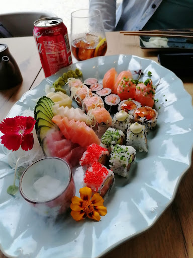 Então pedimos dois iguais para evitar confusão. Aí chegaram as entradas que eram saborosas (salmão marinado e carpaccio de salmão) mas o prato principal, com diversas peças não tinham sabor de nada. Foram 25 euros para cada onde somente a entrada valeria a pena. Quando chega aquela grande tábua de sushis com gelo seco a sair fumaça, o cliente fica impressionado, mas o sabor é completamente neutro. Aqui é aquele clássico sushi onde o que mais tem sabor é o molho de soja e o wasabi. Colocam duas entradas para dar uma boa impressão e depois você sai de lá com a sensação de que gastou seu dinheiro com pouca comida e com...