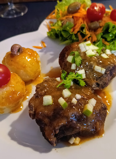 We had a very very bad experience at this restaurant. We had some vegetarians in the group so we first checked the menu: One out of the two vegetarian meals had meat. The other one was not available. Then we asked the waiter and he was being very judgy as in "what's wrong with you, we only have the best meat". Males have to order meat and beer, anything else they don't like and you are being treated very rude. The worst experience I ever had: The waiter (probably a bit drunk) dropped a whole bowl of veggies with sauce into the neck of my friend. Barely apologized and we still paid for everything, included the bread and olives which they put without asking.