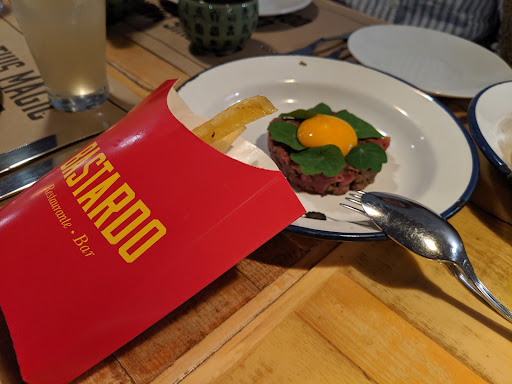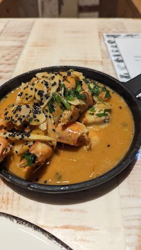 Continued with starters, the tartar, pica pau and shrimp. Pictures included - the fries/box coming with the tartar are indicative of the whimsy at this place - just brilliant. The pica pau was complex and intensly flavorful. The shrimp dish comes and is partially cooked table side. All are deftly executed.