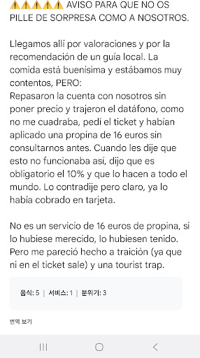 Perfect if you like the taste of frozen seafood! I ordered the rice with mariscos. Not a single ingredient was fresh; frozen clams, frozen squid, frozen shrimp, and frozen crab (confirmed by waiter). The rice was watery and was not blended with the seafood. In my opinion, the abundant coriander was an attempt to disguise the taste of a very poor product. The freshness of the seabass my colleague ordered was also very questionable. The waiters were the only positive note of this restaurant; very polite and forthcoming. They also happily confirmed my doubts. As a fish lover, in a seaside city like Lisbon, it was a very big disappointment. Unfortunately, I would not repeat this experience. Is the quality of the ingredients dictated by the owner or the cook?- shame. Although I detest leaving bad reviews, hopefully my comments can help them understand that rather than serving a bucket of rice, they should focus on quality. Unfortunately, the last disappointment was the bill where they automatically applied a 10% surcharge (as a tip), without informing us. This is, to say the least, Cheeeeeky, or a tourist trap. Vergonha, you do not represent Portuguese...