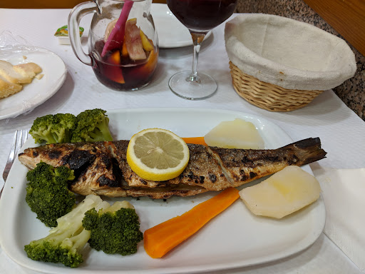 Read moreTo get to the reataurant, I had to go through a minimarket. The food was ok at most. The default food had a lot of cheese (from the fridge, for a few days) and only one piece of bread. The main menu was not as tasty as it looks in this picture. The bass was salty and all the others needed salt (which you can add). Never was I asked about the food and the starter stayed on my table from start to finish. 2/5 stars from me, would not go there again, unless it is the only one open or the other require staying in line. Ignore the "TripAdvisor" excellency certificate they have...