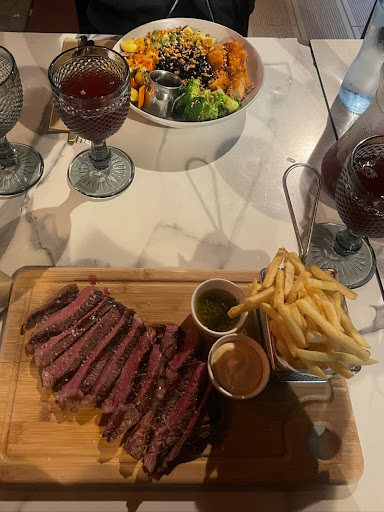 Read moreFoi a primeira vez que estive no Bipolar e devo dizer que foi uma experiência muito agradável. Moro em Lisboa mas senti-me como se fosse uma estrangeira kkkk o espaço é Lindo, com vista para o rio Tejo e vemos os barcos a passar juntamente com o maravilhoso sol que ilumina o rio, dá uma sensação relaxante 😌 Eu e mais dois amigos meus fomos almoçar. Fizemos uma reserva para as 12h30. Começamos com um couvert que trazia pão caseiro e focaccia com uma manteiga de ervas e patê de atum, nachos com guacamole e umas gambas à guilho como entradas. De bebidas pedimos 2 sex on the beach e uma Pina colada e como todos nós não consumimos álcool, optamos por pedir todas as bebidas sem álcool 😋 De prato principal pedimos 2 picanha a Black angus e um prato de salmão grelhado, e devo dizer que o meu salmão estava divinal 🤩 acompanhou muito bem com puré de batata doce e legumes salteados 👌🏽 De sobremesa pedimos o petit gateau (era de doce de leite se não me engano, nunca tinha experimentado algo assim e adorei 😍) e a panqueca de pastel de nata (esperava que tivesse mesmo o sabor de pastel de nata, mas não achei muita piada, a textura é ótima pois é uma panqueca alta e bem fofinha parecia um suflê, mas sentia-se bastante o sabor da panqueca). Juntamente pedimos 2 smoothies. Pedimos a sugestão da staff e recomendaram-nos o Bipolar e o Jungle e estavam deliciosamente divinais 🥰. Devo dar 5 ⭐️ a staff que recepcionou-nos sempre tão bem desde o momento que chegamos a hora de partirmos. Sempre estiveram disponíveis para nós, muito alegres e dispostos a alinhar nas nossas brincadeiras 🤣 Nota 10 e sem dúvida que voltaremos, desta vez para...